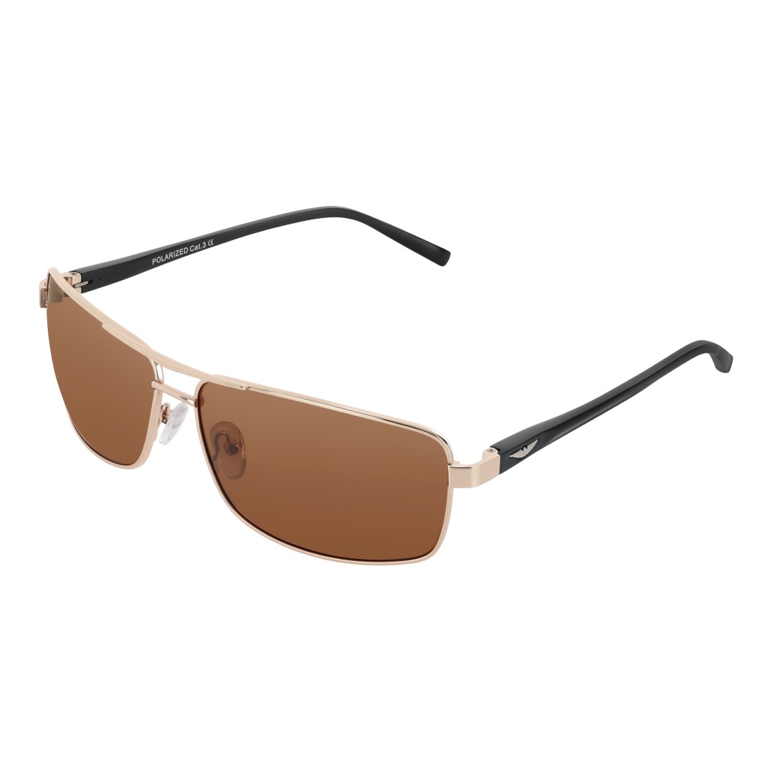Okulary przeciwsłoneczne męskie z polaryzacją brązowe pilotki prostokątne złote PolarZONE 94 2